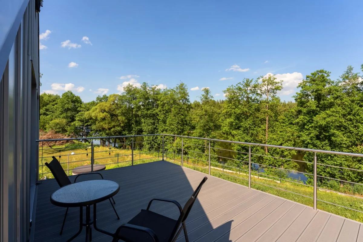 Dwa tarasy jeden z widokiem na jezioro drugi na zachód słońca zapewnią idealny wieczorny relaks.
