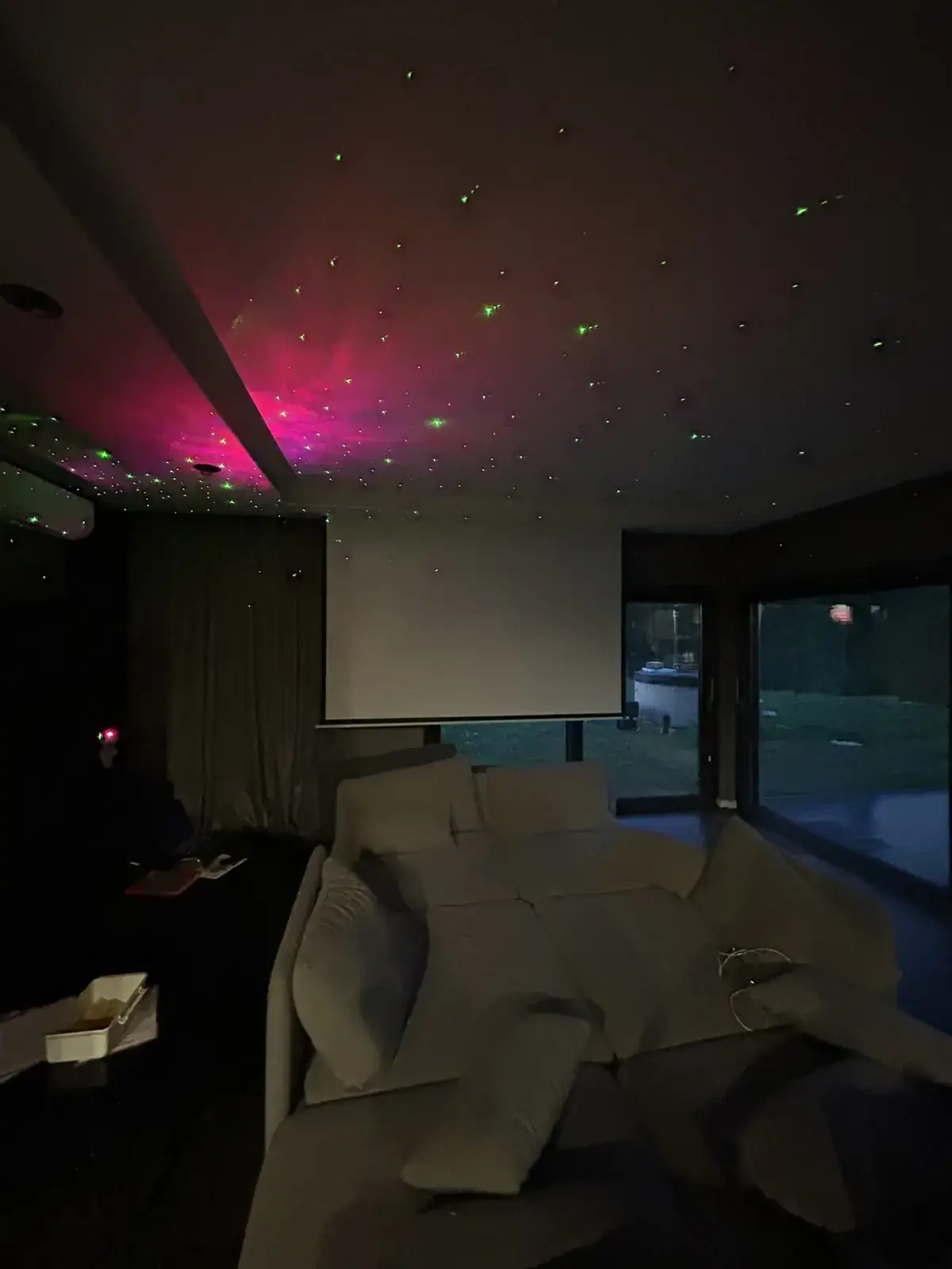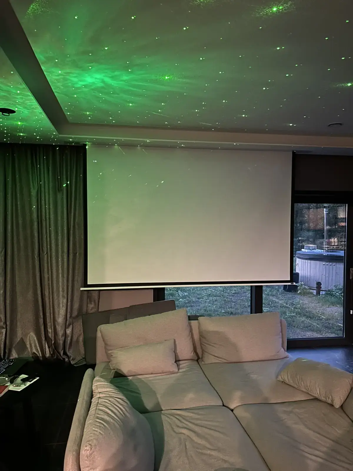 Salon który w 3 minuty przekształcasz w salę kinową z rzutnikiem, ekranem i leżankami bądź fotelami sprawia, że pogoda na zewnątrz nie straszna.